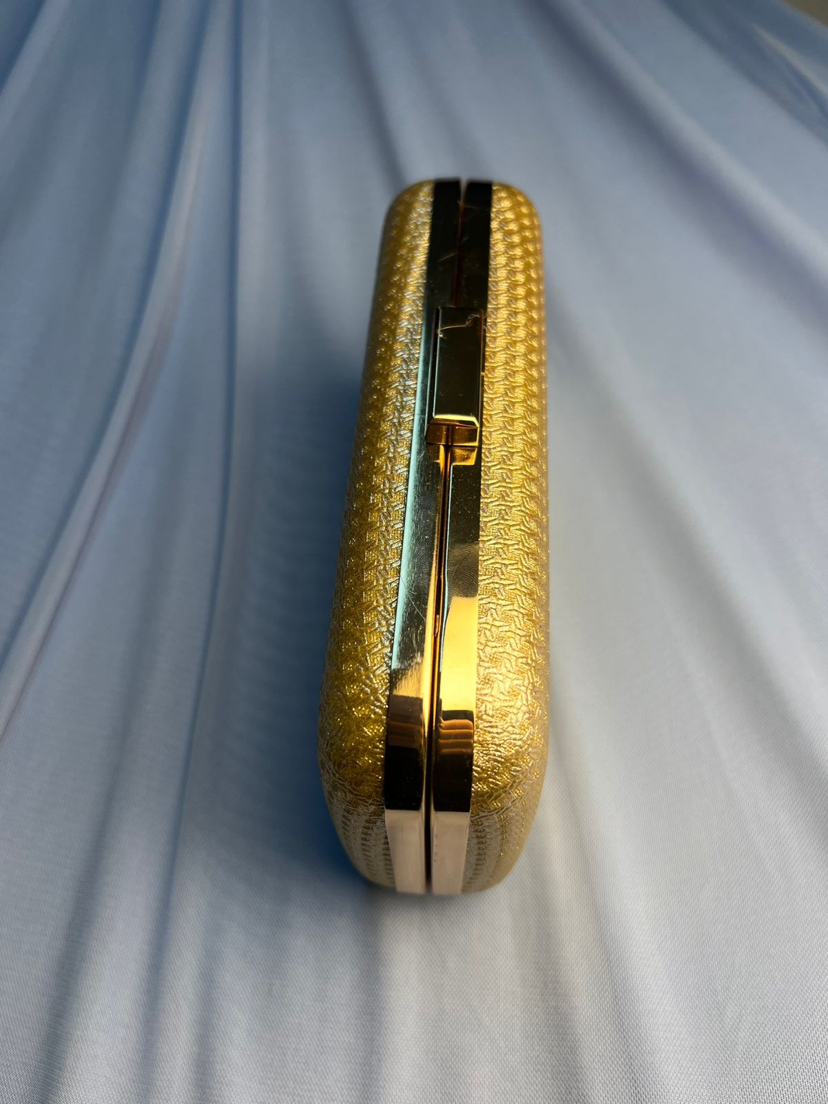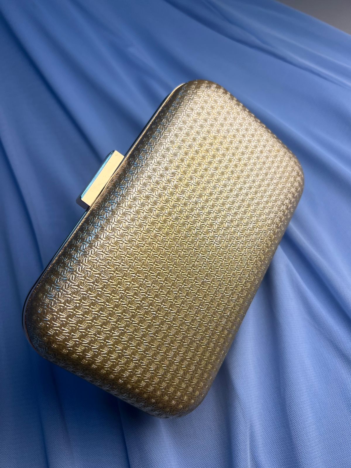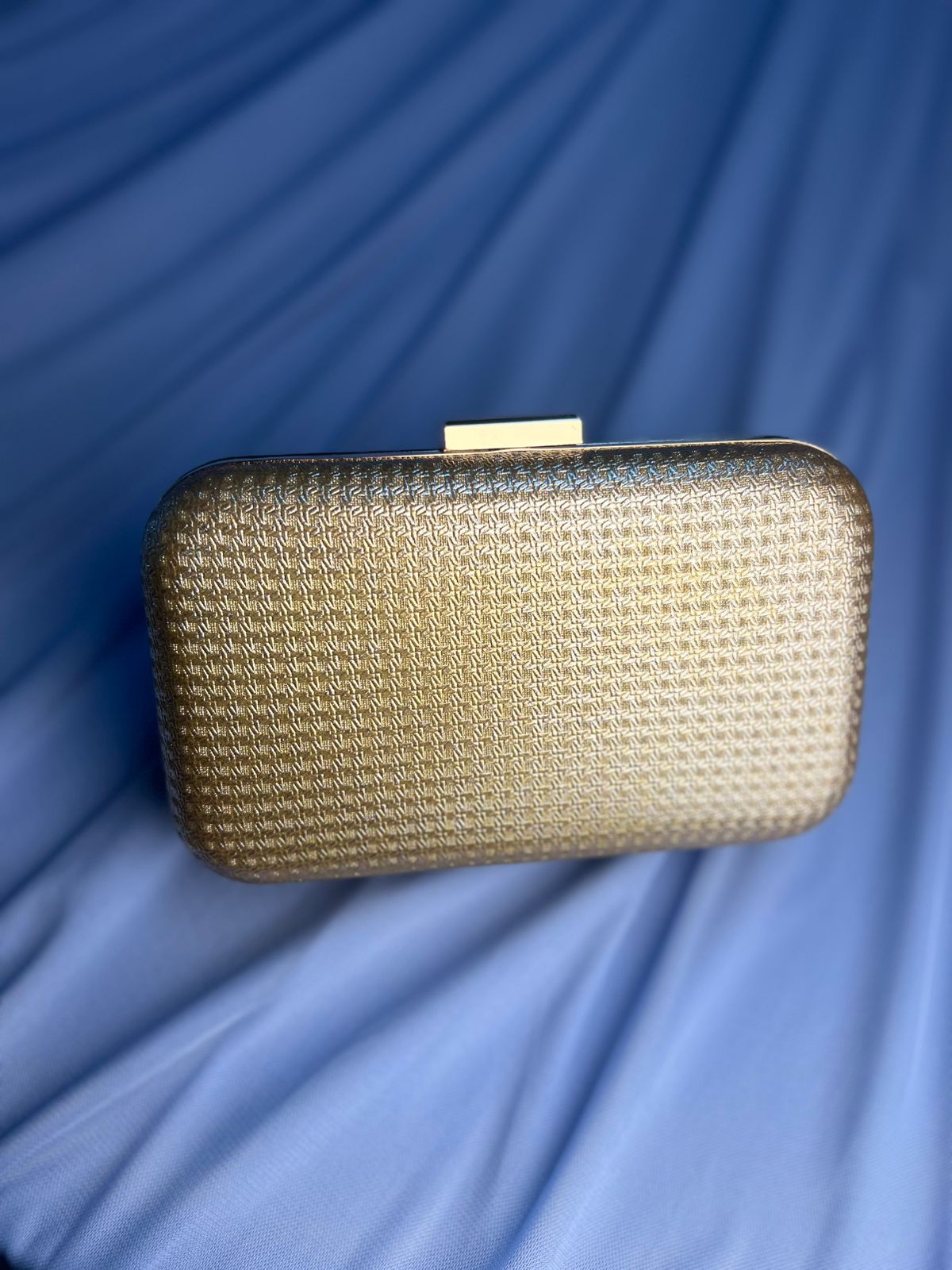 A clutch dourada com pedrarias luxe gold é um acessório de impacto, perfeito para eventos especiais. Combina com tons neutros, metálicos ou até cores vibrantes, elevando qualquer look. Sofisticada e funcional, é ideal para complementar produções elegantes.