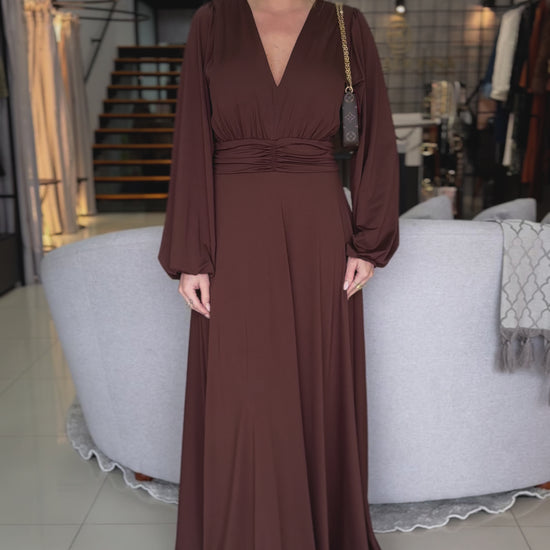 Elegância escultural em vestido de um ombro só, adornado por uma manga flare de movimento etéreo. A silhueta assimétrica, somada ao caimento fluido, traduz modernidade, sofisticação e um charme absolutamente atemporal.