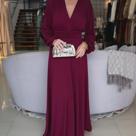 Elegância escultural em vestido de um ombro só, adornado por uma manga flare de movimento etéreo. A silhueta assimétrica, somada ao caimento fluido, traduz modernidade, sofisticação e um charme absolutamente atemporal.
