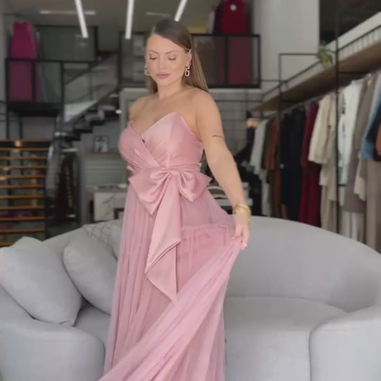 "Um vestido longo que desenha o corpo com elegância e faz você brilhar com naturalidade