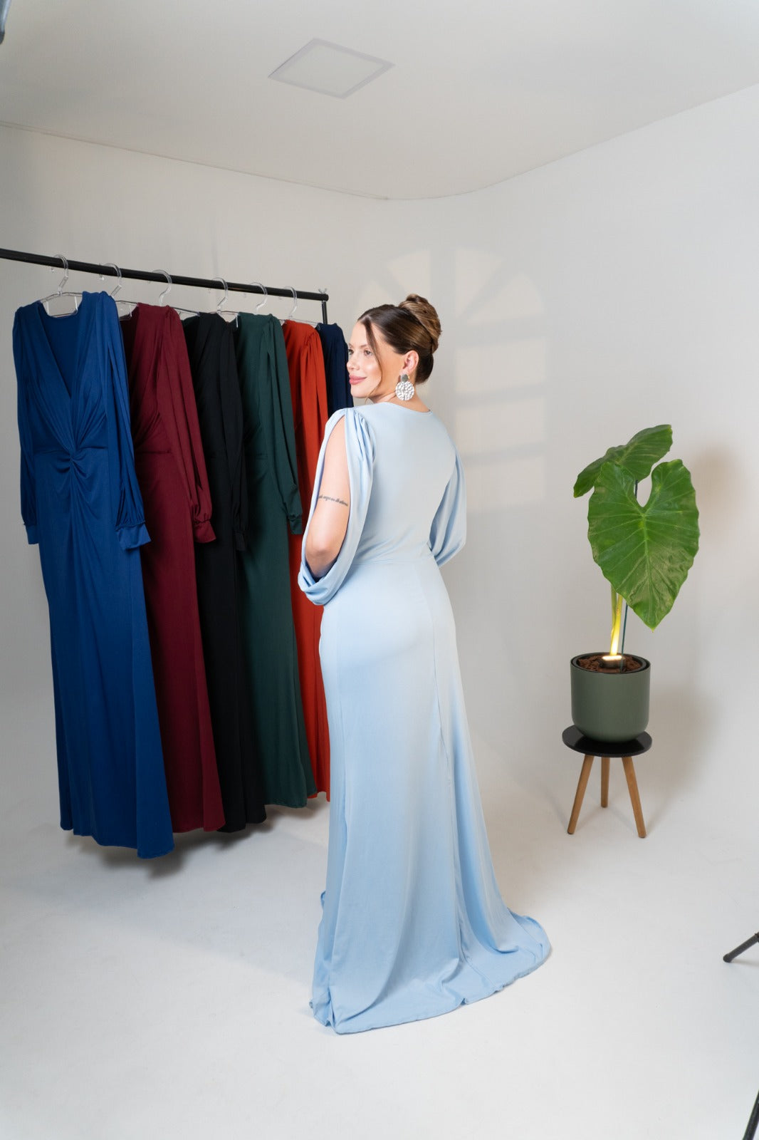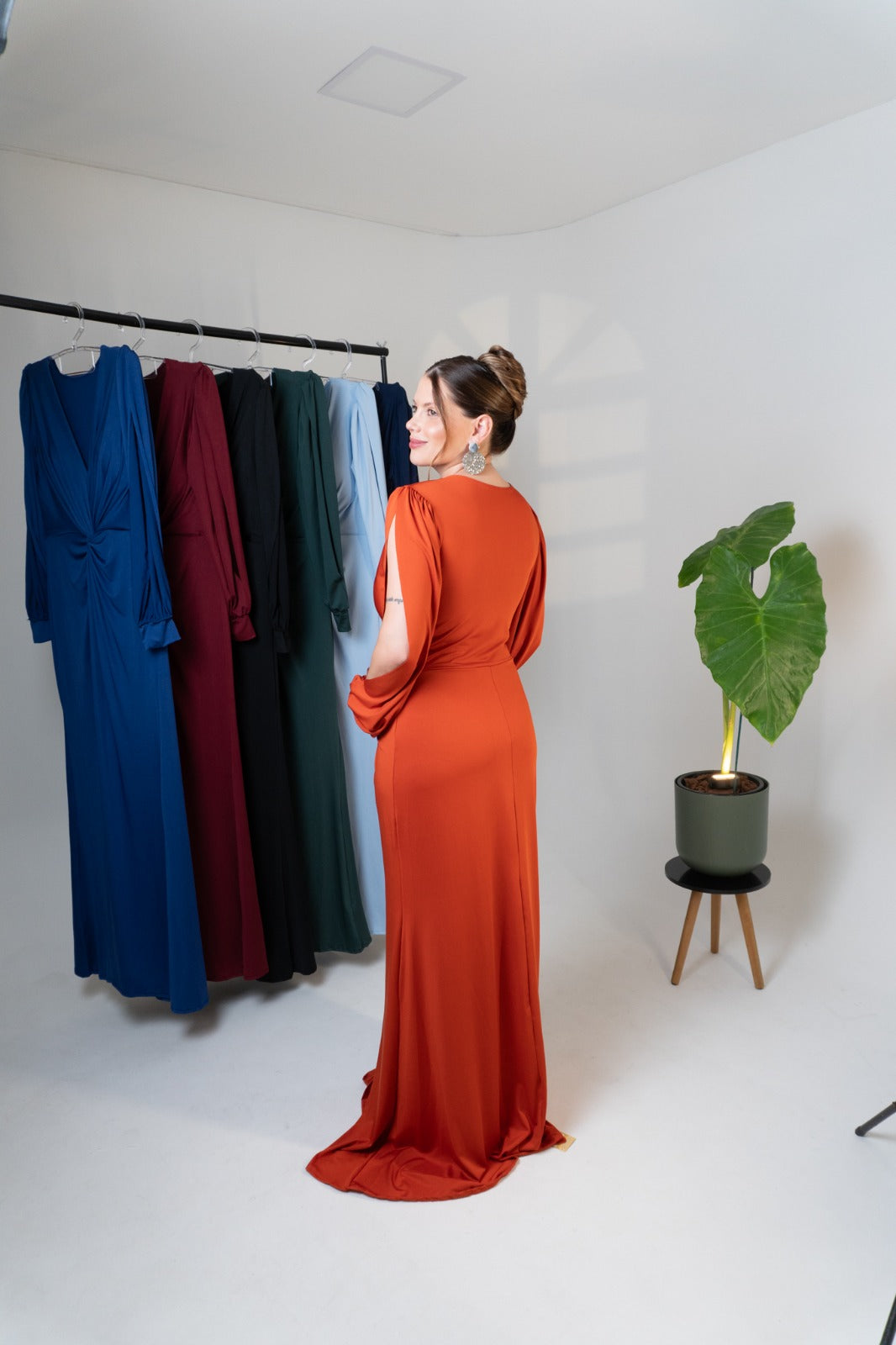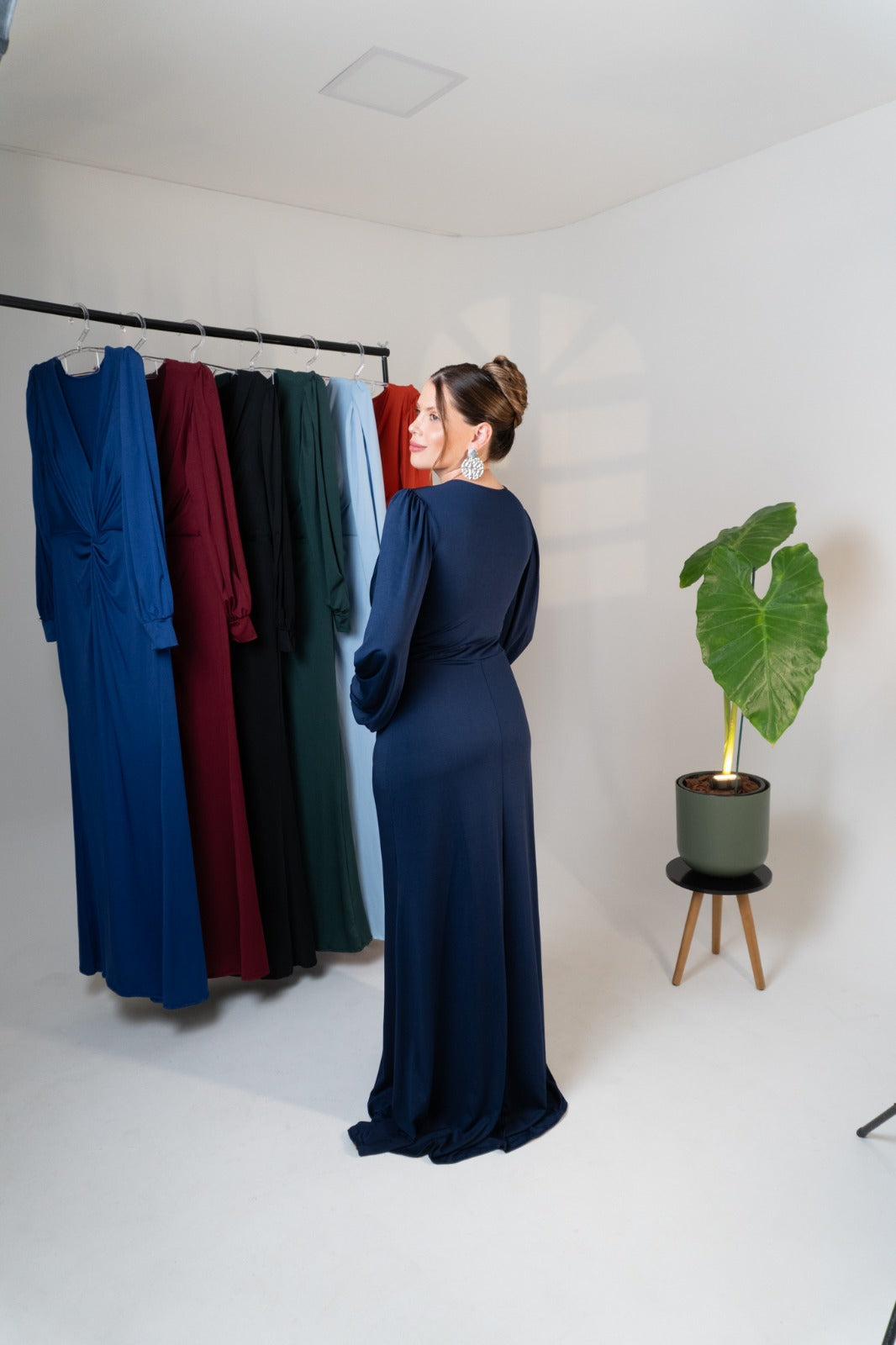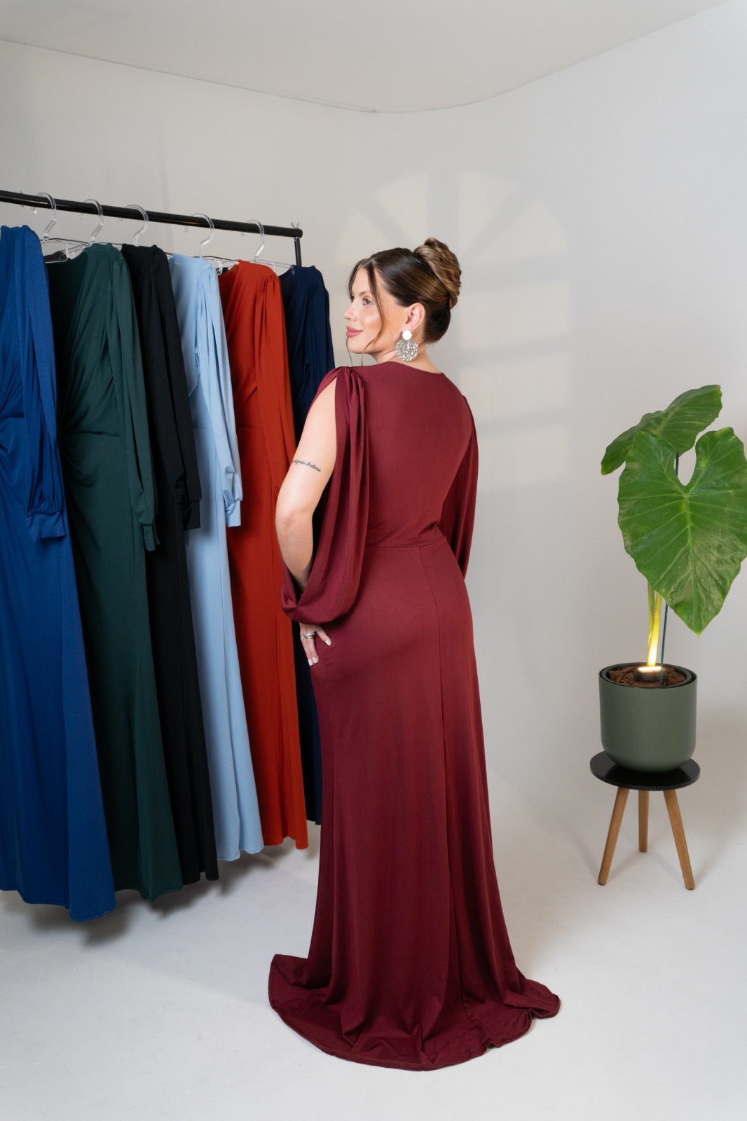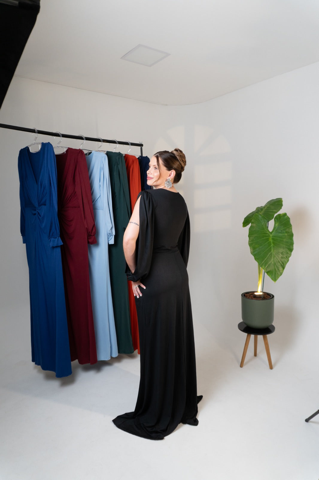 Elegância e sofisticação em cada detalhe. O vestido Karina com mangas longas é a escolha perfeita para ocasiões especiais, com um design que valoriza a silhueta de forma impecável.