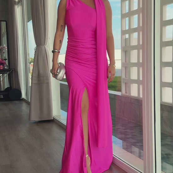 Vestido Longo Elegante com Fenda e Detalhe de Faixa