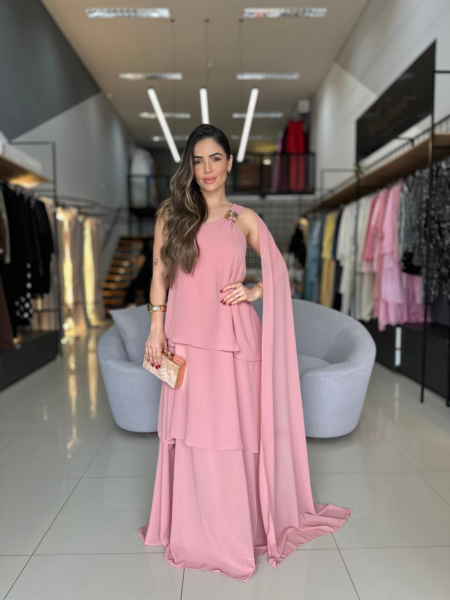 Este vestido ombro único com manga falsa e detalhe em cinco combina elegância e modernidade. O design assimétrico valoriza a silhueta, enquanto o manga falsa oferece um toque sofisticado sem abrir a mão do conforto. A fivela acrescenta um charme discreto, ideal para graças especiais em que o estilo refinado faz toda a diferença.