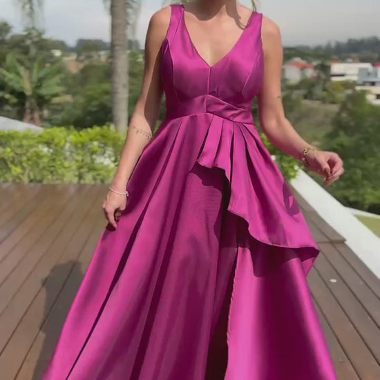 Vestido deslumbrante de inspiração princesa, adornado com babados etéreos e alças delicadas. A silhueta romântica e o acabamento impecável evocam uma aura de graça e requinte, ideal para momentos de pura sofisticação. Uma peça que traduz feminilidade e elegância em cada detalhe